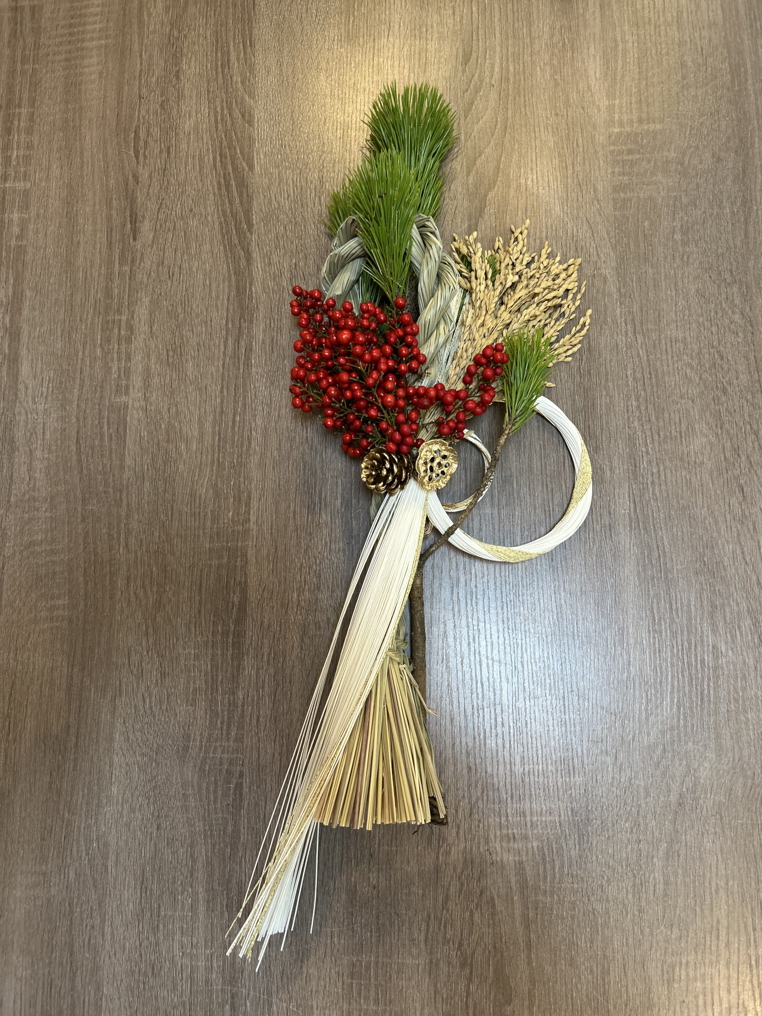 松ぼっくりがあしらわれていてクリスマス過ぎからお正月まで長く楽しめるお正月飾りです✨